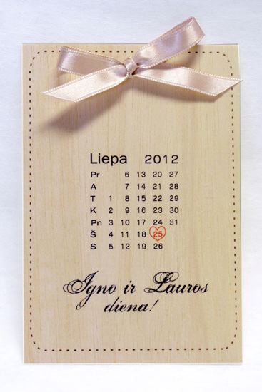 Įvairioms progoms: vestuvėms, Kalėdoms, gimtadieniui, krikštynoms. Širdyje būdami tikri patriotai, esame sukūrę daugybę medinių atvirukų su skirtingais Lietuvos miestų ir lankytinų vietų vaizdais. Tai tarsi subtili žinutė pasauliui, kviečianti aplankyti mūsų unikalų kraštą. Tikime, kad ateis tas laikas, kai Lietuvą pasaulyje reprezentuos ne tik gintaras, bet ir mūsų kurti medžiu kvepiantys išskirtiniai atvirukai.