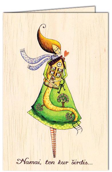 Į rankas paimtas medinis atvirukas alsuoja šiluma…