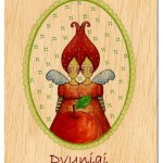Kokie piešinėliai vaizduojami ant medinių atvirukų?