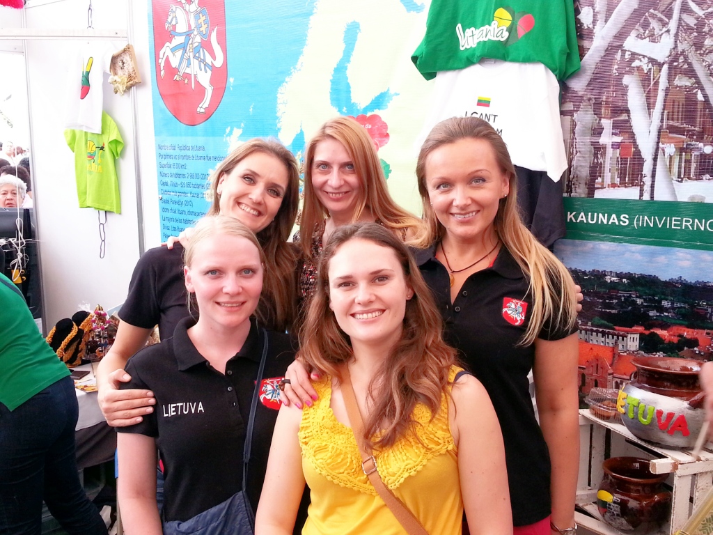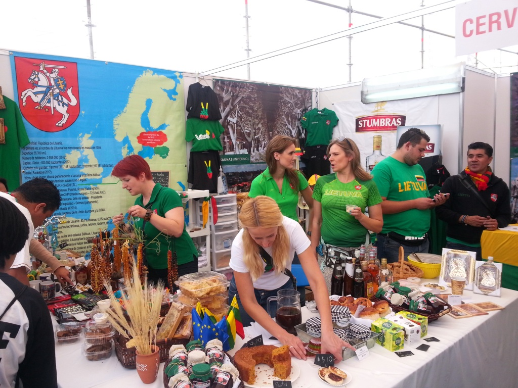 „Šiemet stendą įrengėme savo pastangomis, – pasakoja lietuvių bendruomenės įkūrėjos. – Jis ganėtinai jaukus ir spalvingas. Stende kasdien Lietuvą pristatome penkios uniformuotos lietuvaitės, išmokome smalsuolius po keletą lietuviškų žodžių, paaiškiname mūsų kalbos kilmę, pasakojame apie Lietuvą, mūsų nepriklausomybę, turizmą, ekonomiką, siūlome paragauti specialiai mugei atvežtų lietuviškų gėrimų, namie gamintų tradicinių patiekalų. Šįkart mūsų stalas ypač gausus: nuo gintaro bei vilnos dirbinių iki aguonų pyragų su spanguolių kisieliumi. (Turime ir marinuotų silkių, juodos duonos, šakočių, kmynų arbatos, kisieliaus, bulvių su spirgučiais, keptos duonos, lietuviškos mišrainės, „Tinginio“, trupininio pyrago, medaus korių, miško uogų uogienių, molio dirbinių ir t. t.) Mugė trunka nuo 11.00 iki 20.00 val. Grįžusios namo lietuvės pasiraitoja rankoves ir kimba į patiekalų, skirtų kitai dienai, gamybą. Gerai, kad sulaukiame antrųjų pusių moralinės paramos, nes mugės dienomis žmonų namie kaip nebūta!“