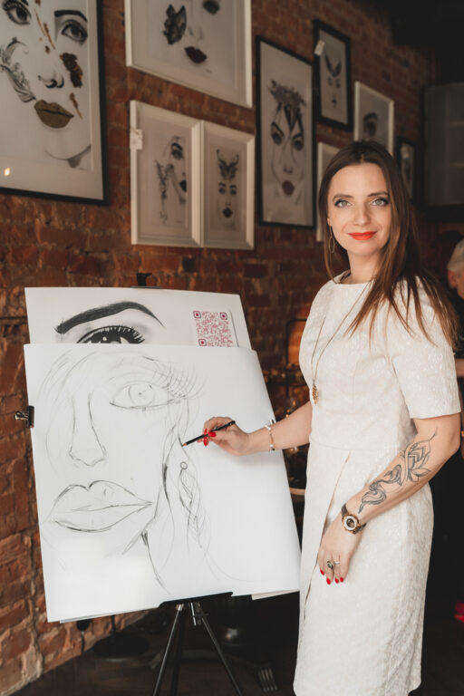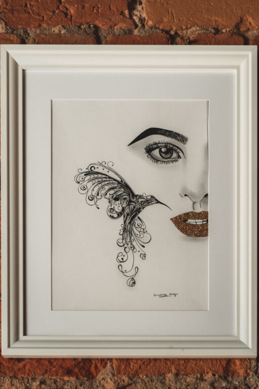 „Moteris – visatos centras, aplink ją sukasi visos planetos. Norėdama pabrėžti moterų ypatingumą, svarbą, grožį, eskizuoju jų veidus, pasirinkdama įvairius jas supančius simbolius, priedus – „Swarovski“ kristalus“, – apie savo paveikslus pasakoja menininkė.