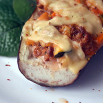 Baklažaną švariai nuplauname, perpjauname išilgai perpus. Dalį minkštimo išskaptuojame. Išskaptuotąją dalį susmulkiname, šiek tiek negražesnę (su sėklomis) išmetame (apytiksliai turėjau maždaug saują baklažano minkštimo).