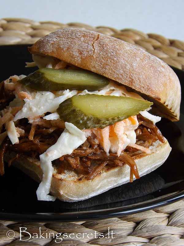 Bandelės – ir traškios, ir minkštos, mėsa tirpsta burnoje su saldžiu barbekiu padažu, kopūstų ir morkų salotos prideda traškumo, vėsumo ir švelnaus krienų aitrumo, agurkėliai – saldžiarūgščio skonio. Viskas puikiai dera tarpusavyje.