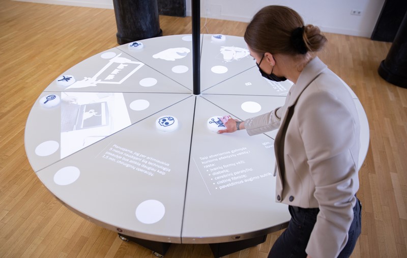 Stende interaktyviai pristatomos 7 sveikatos technologijų ir biotechnologijų krypties inovacijos. Pavyzdžiui, pirmosios pasaulyje 3D mikroformavimo staklės, neįtikėtinu tikslumu galinčios apdirbti medžiagas. Arba DNR redagavimui skirtos genų žirklės, kuriomis perprogramuojant genetinį kodą galima ištaisyti ligas sukeliančias genų mutacijas. Už kai kuriuos sprendimus jau gauti tarptautiniai ir nacionaliniai apdovanojimai.