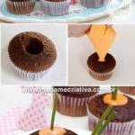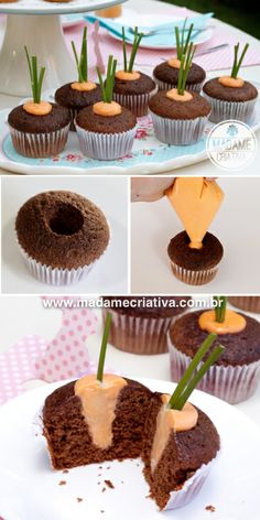 - Keksiukai-morkytės. Šokoladinių keksiukų viduje padarę ertmę, ją pripildykite kremo ar grietinėlės su maistiniais oranžiniais dažais. Viršūnėlę papuošite žalumynais. Ir štai ant jūsų stalo auga morkytės.