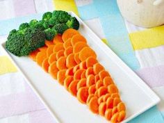 - Galvojate, kaip patiekti svečiams daržoves? Supjaustykite morkas griežinėliais ir išdėliokite trikampe forma. Papuoškite petražolėmis toje vietoje, kur turėtų būti morkos žaliasis stiebas. Puiki ir skani stalo dekoracija.