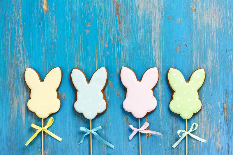 Išimkite tešlą, iškočioję formuokite margučius ar kitų formų sausainius, įsmeikite pagaliukus į sausainį. Kepkite kepimo popieriumi išklotoje skardoje 7–12 min. iki 180 °C įkaitintoje orkaitėje. Iškeptus sausainius aptepkite glajumi. Tirštą glajų pasidarysite iš iki putų išplakto kiaušinio baltymo, pusės šaukšto citrinų sulčių ir maždaug 80 g miltelinio cukraus – viską reikia gerai perplakti ir pridėti norimos spalvos konditerinių dažų.