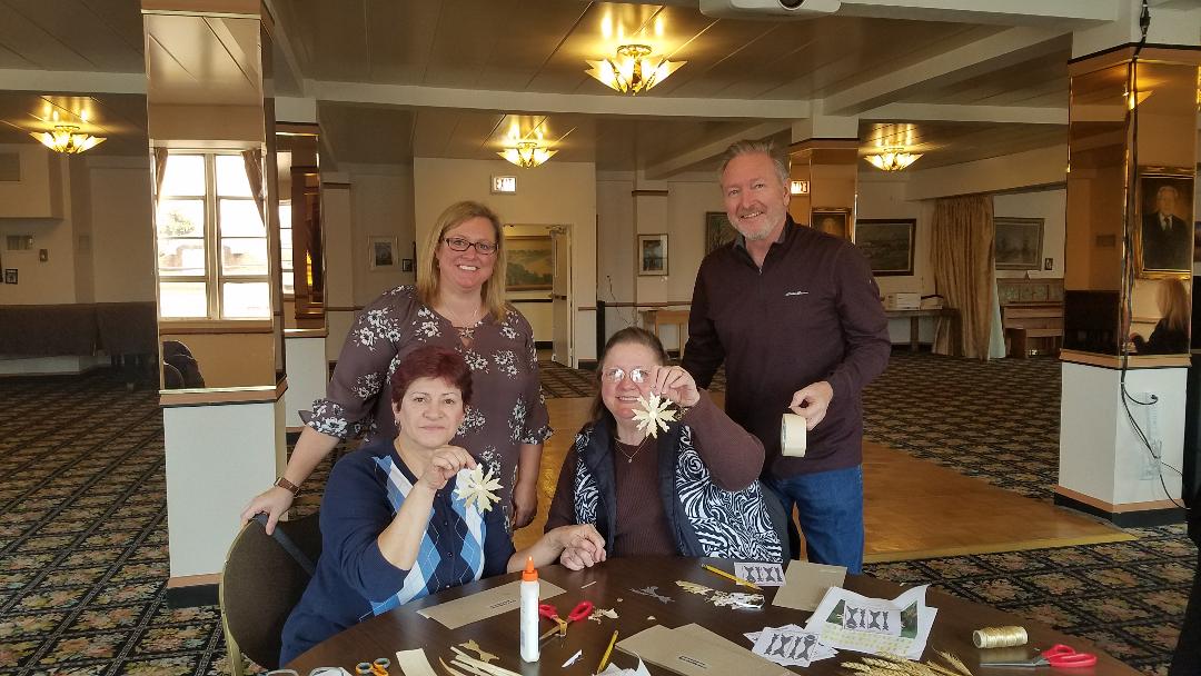 Muziejaus narys Steve Blanchard – vienintelis vyras tarp keliolikos moterų, kuris panoro perprasti šiaudinukų gamybos paslaptis. Jis yra kilęs iš lietuvių vadinamųjų „grynorių“ giminės. Steve žmona Jane – airių išeivių palikuonė, kuri mielai kartu su vyru atvyko į kalėdinių puošmenų kūrybos pamoką. Kartu su sutuoktiniais Blanchard prie to paties stalo įsikūrė studentiško amžiaus draugės – Goda Kurpalis ir palestinietė Sara Hattab. Besidarbuodamos jos smagiai bendravo su naujais savo pažįstamais – Steve ir Jane. Amerikoje gimusi Goda puikiai kalba lietuviškai ir didžiuojasi savo tėvų gimtąja kalba, kuri yra laikoma viena iš seniausių šiuo metu pasaulyje gyvuojančių kalbų. Lietuvių kalbos tema buvo viena iš daugelio, kuriomis diskutuota prie šio stalo.
