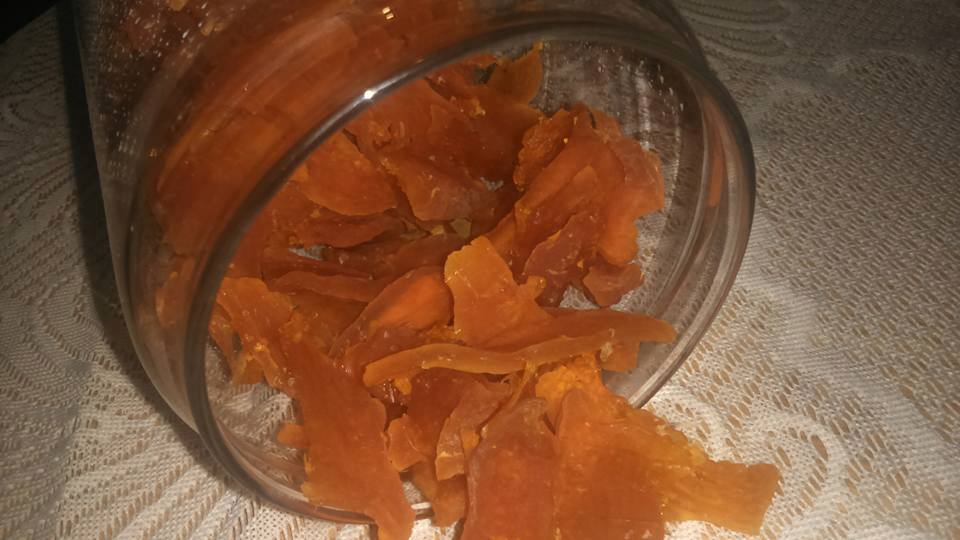 Ant viryklės statykite moliūgus su sultimis, kai užvirs, pavirkite 2–3 min. Nupilkite sirupą. Moliūgus dėkite į orkaitę ar džiovyklę ir išdžiovinkite.