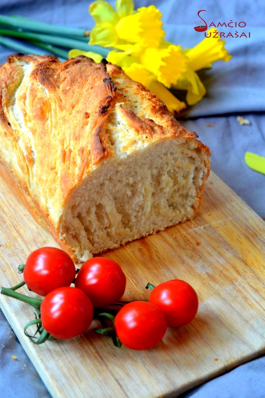 Dėkite tešlą į kepimo indą ir iki 200 °C temperatūros įkaitintoje orkaitėje kepkite 30 min., tada temperatūrą sumažinkite iki 180 °C ir pakepkite dar 10 min.