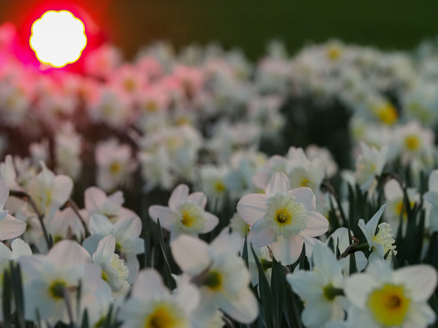 Vakaro magija: šviesa ir muzika narcizų jūroje