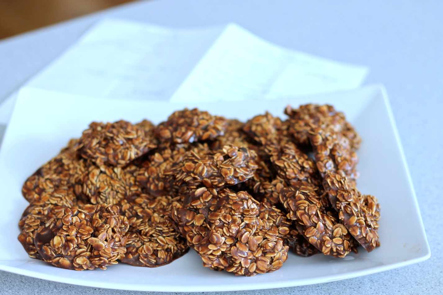 Sviestą, cukrų, pieną, kakavą ir avižinius dribsnius sudedame į puodą ir maišydami viską užverdame. Vos tik masė pradeda burbuliuoti, puodą nukeliame nuo ugnies ir įmaišome riešutų sviestą bei vanilę.