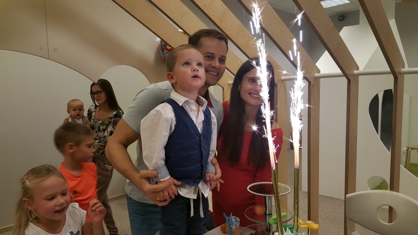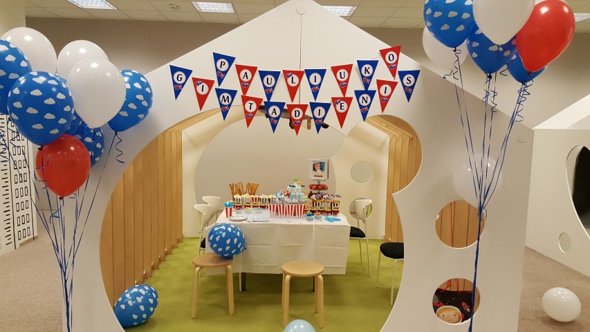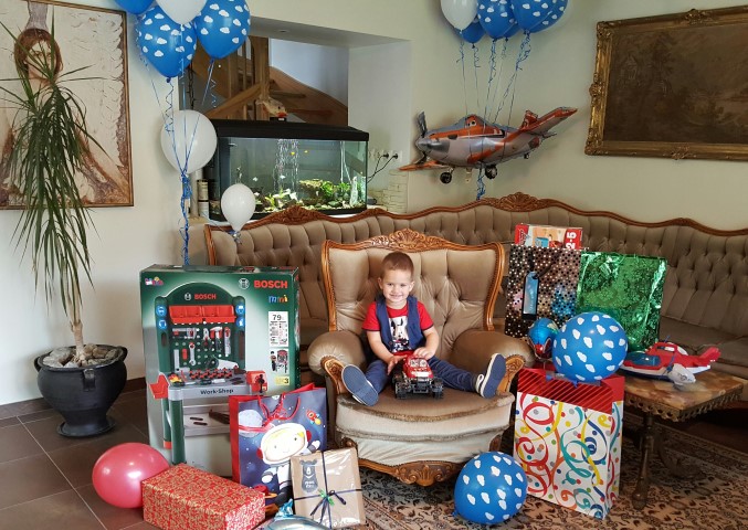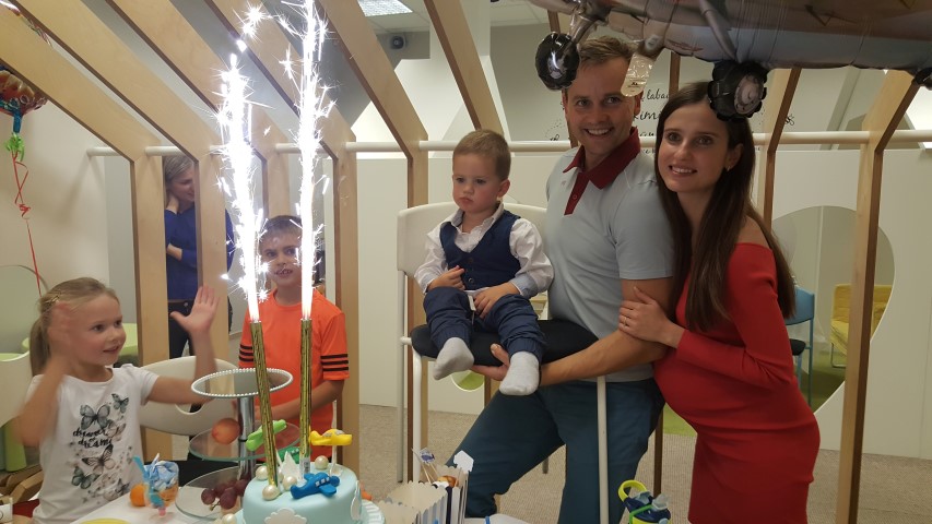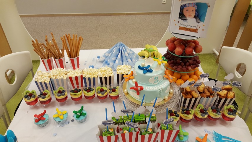 Agnė savo sūnų lepino nuo pat gimtadienio ryto – balionai „debesys“, torto gabalėlis su dviem žvakutėmis ir žaislas – didelis lėktuvas atkeliavo į jo lovą vos prabudus. Vėliau laukė pietūs su seneliais, o vakarop – linksmybės su draugais. Šventė prasidėjo būtent tą akimirką, kai berniukas išvydo pasaulį – 18.30 val. Jos puošmena tapo ir „Bijolos“ pagamintas teminis tortas su lėktuvais.