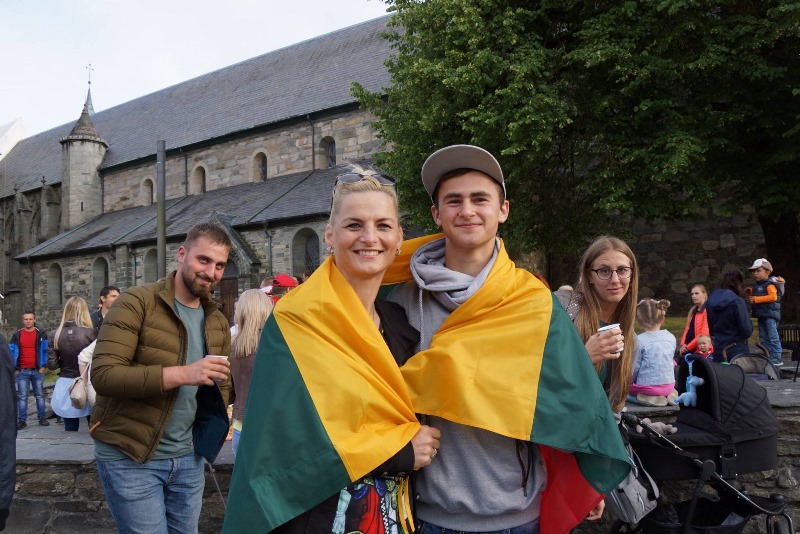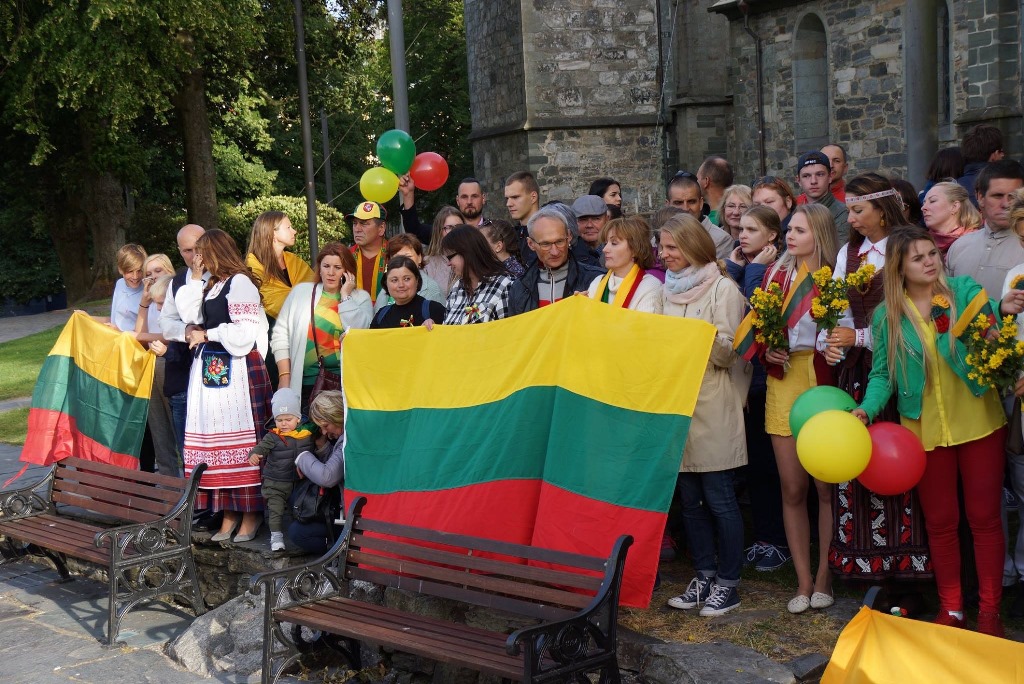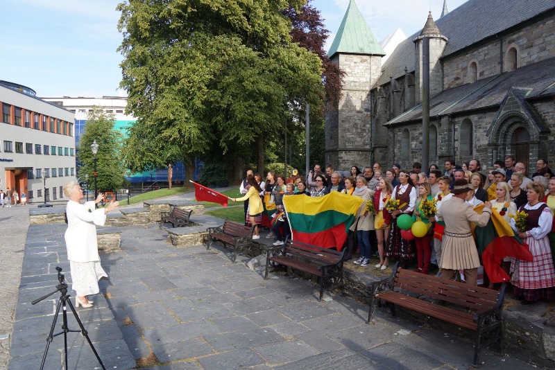 Liepos 6 dieną suskambus Stavangerio katedros bokšto paskutiniam varpo dūžiui, pagrindinės aikštės orą sudrebino gausiai susirinkusių lietuvių balsai. Smagiai leidžiantys vakarą pro šalį einantys žmonės akimirkai sustojo pažiūrėti, kas čia vyksta.