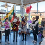 Visi linksmai padainavo Artūro Petruokos ir Algirdo Lukšio mokyklos dainą – himną „Abėcėlė“.
