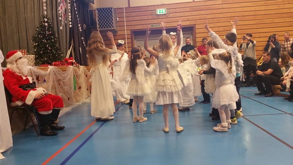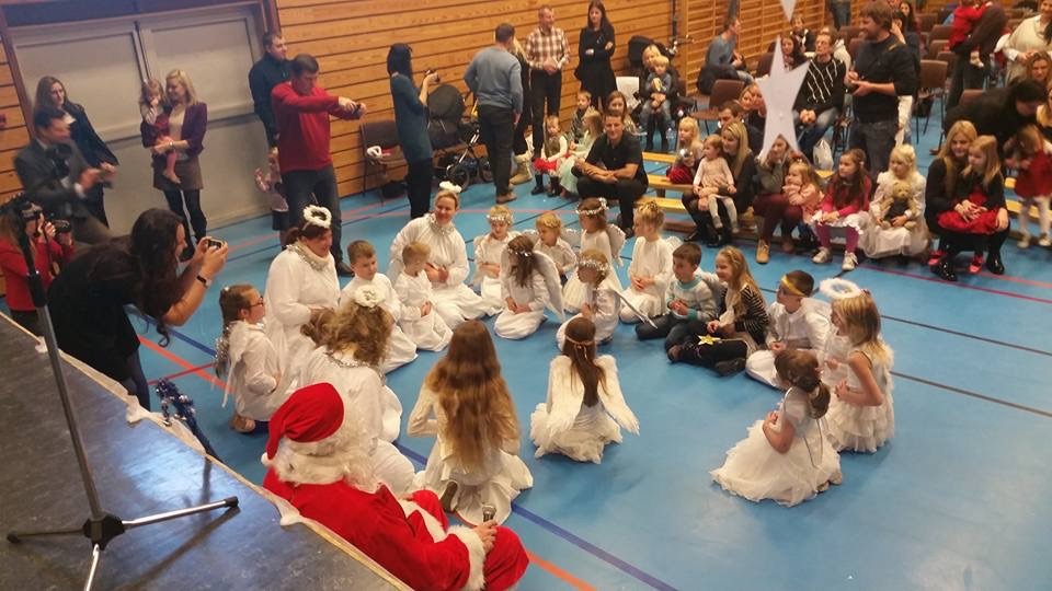 Gruodžio 13 dieną pasipuošusius baltais drabužiais ir baltais sparnais vaikučius tėveliai atsivedė į Maudlando mokyklą Hommersåke. Juos pasitiko septyni angelai su baltomis aureolėmis virš galvų – tai lituanistinės mokyklėlės „Draugystė“ mokytojos. Ši šventė iš kitų kiekvienais metais rengiamų kalėdinių vaikų švenčių išsiskyrė tuo, kad ją vesti padėjo ir naujo vėjo įpūtė atvykę svečiai.