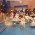 Toliau programą tęsė vaikų pasirodymai, o netrukus atėjo ir ilgai lauktas Kalėdų Senelis su dideliu maišu, pilnu dovanų. Ši Kalėdų šventė dar išsiskyrė ir tuo, kad tiek vaikučiai, tiek tėveliai šoko lietuvių liaudies šokius bei žaidė liaudies žaidimus. Buvo kiek neįprastas, bet labai įdomus, net kiek mistiškas vaizdas… Angelai, vaizduotę nukeldami į Naujojo Testamento kalėdinius įvykius, čia pat atsiduria lietuviškame pasaulėvaizdyje. Jie puikiai dainuoja: „Šiaudų batai, šakaliniai padai“, skanduoja: „Oira, oira, kitą, kitą“. Vargiai kas patikėtų, kad jie ne iš Betliejaus, o iš baltų krašto. Tai dar kartą byloja, kad baltiška kultūra ir krikščionybė dera ir sugyvena tarpusavyje.