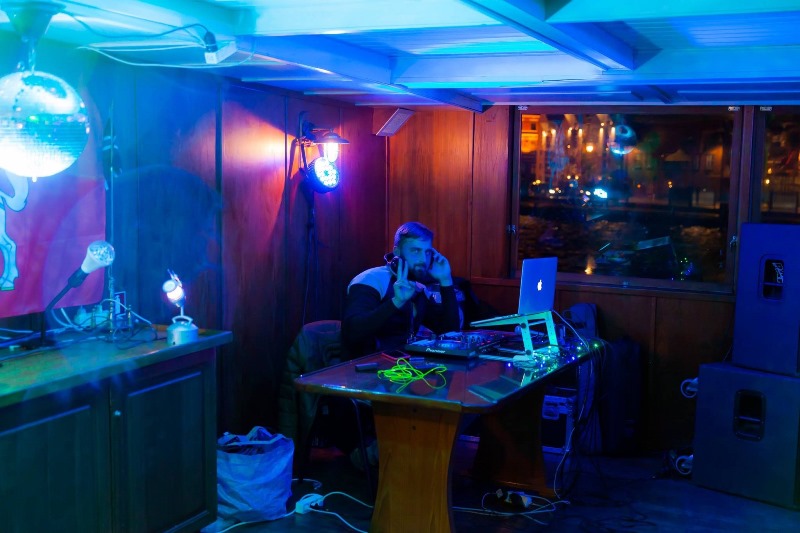 Išėjus į denį pakvėpuoti tyru oru, buvo galima pajusti aplinkui vykstantį Stavangerio naktinį gyvenimą. Šviesų pašvaistės ir žmonių balsų aidai atsklisdavo ir iš šiapus, ir iš anapus fiordo pusės. Vandenyje atsispindėjo apšviestų barų, restoranų ir kitų pastatų siluetai. Praeiviai, išgirdę kitokią muziką, smalsumo vedami, užeidavo į svečius. Denyje kabojo didžiulis vakaro plakatas, ant kurio didelėmis raidėmis buvo užrašyta: „Lietuviškos muzikos vakaras“. Šį plakatą organizatoriai užsakė ir parsivežė iš Lietuvos. Renginio dalyviai mielai pozavo ir fotografavosi prie jo.