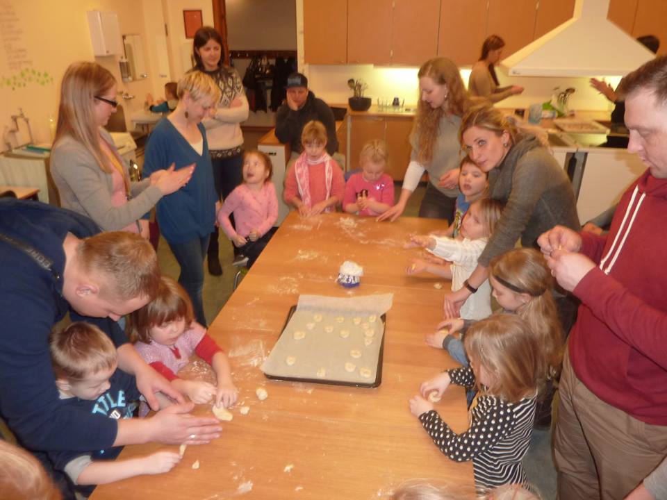 Vaikų laisvalaikio centro „Draugystė“ mokiniai mugėje pardavinėjo šviežius ryte pačių keptus sausainius. Pardavinėjo ne tik juos, bet ir pačių gamintus ežiukus, apyrankes, verbas, vėjo malūnėlius, siekdami paremti paramos ir labdaros fondą „Rugutė“, skirtą padėti onkologinėmis ligomis sergantiems vaikams. Malūnėlius padėjo gaminti tėveliai, už juos buvo surinkta 3610 kronų. Mugėje buvo renkama ir labdara: drabužiai, vaikų sauskelnės, o visi pinigai, surinkti už parduotas verbas, skirti organizacijai „Gelbėkit vaikus“.