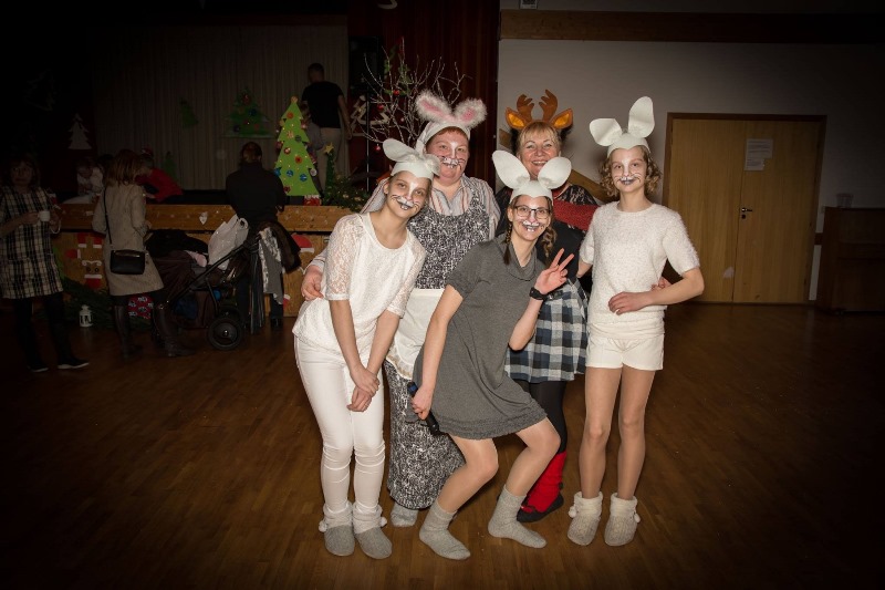 Tėvai sukūrė nuostabias salės dekoracijas. Pagamino eglutes iš įvairių medžiagų: medžio plokščių, popieriaus lapų, makaronų ir kt. Vyko loterija. Visus vaišino grybukais. Dovanų sulaukė arti 100 vaikų.