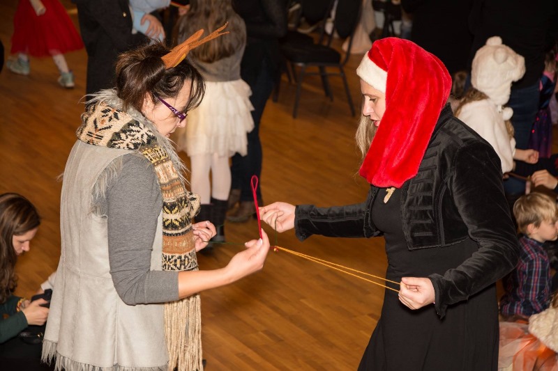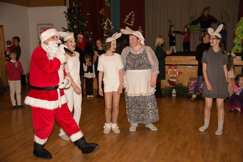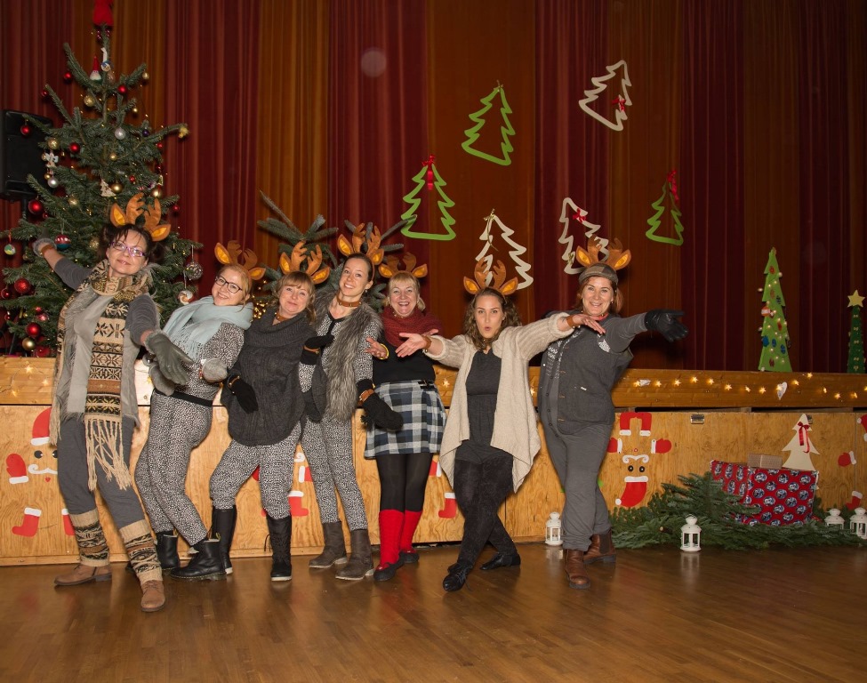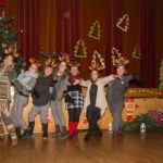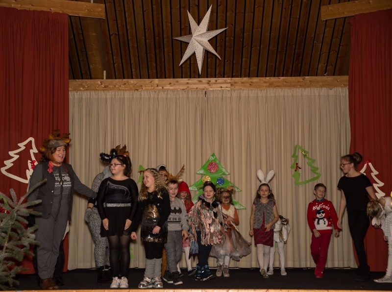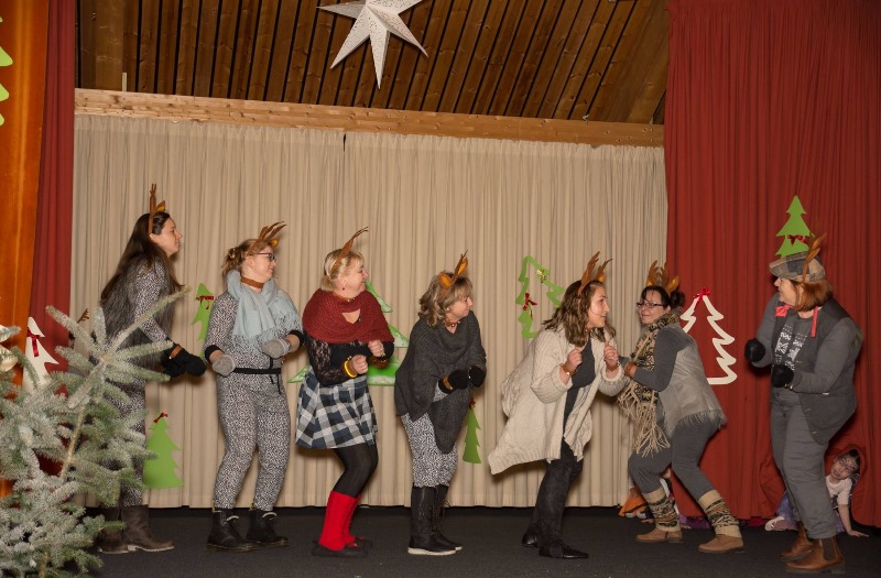 Vaikų kalėdinė šventė prasidėjo teatralizuotu mokytojų pasirodymu. Pasipuošusios briedžių kostiumais, jos šokdamos įtraukė jauniausius, o po jų ir vyresniuosius vaikų ir laisvalaikio centro „Draugystė“ auklėtinius. O kai pastebėjo, kad žiūrovai pradeda šalti, visa pasirodančiųjų grupė nulipo nuo scenos ir įsiliejo tarp žiūrovų. Tada pradėjo šokti visi.