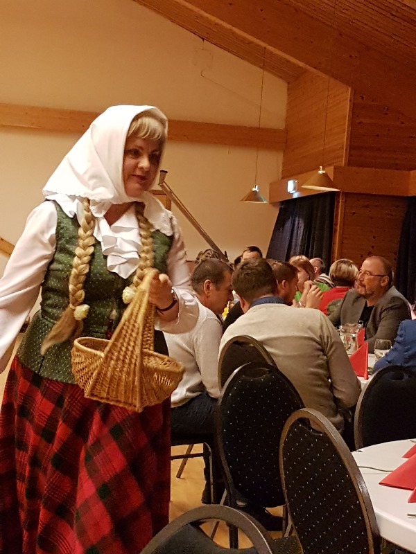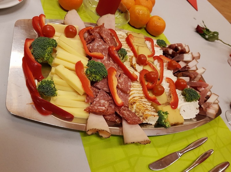 Salėje buvo 12 stalų. Ant jų degė žvakės, buvo kiekvienam šventės dalyviui garbės konsulo padėta rožė. Stalo viduryje gulėjo suridenti mandarinai. Padėkluose buvo gerai pažįstami lietuviški valgiai: griežinėliais supjaustyti lašiniai, dešros ir skilandžiai, varškės sūriai, juodos duonos riekutės, šakotis. O labiausiai visi laukė Viktorijos ir Ugniaus Jagminų pagamintų cepelinų.
