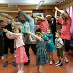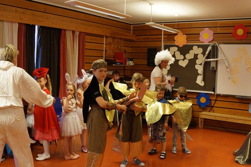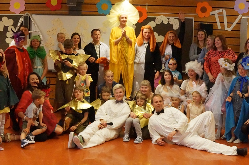 Po pertraukos atsigavus nuo spektaklio sukeltų emocijų, eilėraščiu prasidėjo vaikų laisvalaikio centro „Draugystė“ programa. Toliau buvo parodijuojamos lietuviškos televizijos programos. „Klausimėlio“ laidoje sužinojome, kad su mumis yra jubiliatas. Jis buvo pasveikintas. Kulinarijos studijoje vaikai ne tik gamino ir vaišino patiekalais, bet ir dalyvavo atrakcione, nešdami lėkštes ant galvų. Tėčiai turėjo pavaizduoti reklamą. Tuo metu, jiems nežinant, buvo atliktas akrobatinis triukas. Kai Urtė Maurušaitytė deklamavo eilėraštį, galėjai pasijausti esąs „Poezijos pavasaryje“. Ne veltui Urtė prieš savaitę labai sėkmingai pasirodė raiškiojo skaitymo konkurse Lietuvos Respublikos ambasadoje Osle. „Duokim garo“ laidoje į sceną buvo pakviesti tėveliai. Jie dainą „Boružėlė septyntaškė“ dainavo labai įsijautę. Publika, pakilusi nuo kėdžių, apdovanojo juos gausiais aplodismentais.