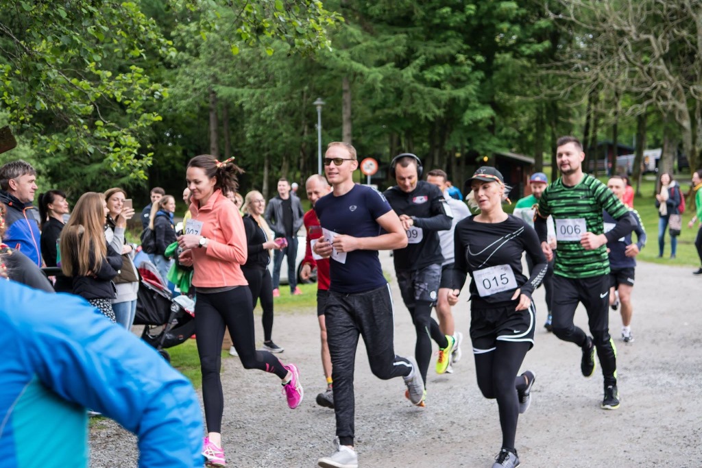 Po vaikų apdovanojimo profesionali trenerė Sandra Sušinskytė suaugusiesiems vedė apšilimo mankštą. Ir kol dar visi neatvėso, renginio organizatorės Lina Mikšytė pakelta ranka davė startą. Kaip ir praeitais metais, taip ir šiemet dalyviai varžėsi moterų ir vyrų kategorijose. Moterų kategorijoje, kaip ir pernai, pirmoji finišo liniją kirto Ineta Trepekūnė (23 min. 1 sek.). Snieguolei Elijošienei atiteko antra vieta (24 min. 15 sek.). Tik viena sekunde atsiliko ir trečią vietą užėmė Vilma Narušė (24 min. 16 sek.). Vyrų kategorijoje pirmasis 5 kilometrus įveikė Laimis Verbliugevičius (18 min. 12 sek.). Antras buvo Marius Bartaševičius (20 min. 14 sek.). Trečia vieta atiteko Dainiui Poškui (21 min. 48 sek.). Nustebino ne tik šie gražūs rezultatai, bet ir tai, kad jaunimas neatsiliko nuo suaugusiųjų. Dvi sesutės – 14 ir 11 metų – bei septynmetis berniukas taip pat įveikė 5 kilometrų trasą.