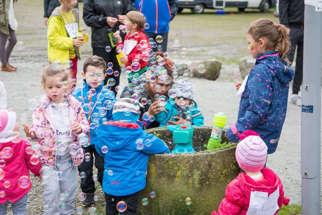 11 valandą mažieji, suskirstyti į dvi komandas pagal amžiaus kategorijas, kirto starto liniją. Tiesa, jie bėgo tik simbolinį 50 metrų nuotolį. Pirmieji pradėjo mažiausieji, kai kuriems reikėjo ir tėvelių pagalbos. Jauniausiam bėgikui buvo metukai. Tuoj pat po vyresniųjų komandos bėgimo visi vaikai buvo apdovanoti medaliais, dalyvio diplomais, saldainių maišeliais. Vaikams nebuvo skiriamos prizinės vietos. Jiems bėgimas surengtas siekiant nuo pat pirmųjų gyvenimo metų ugdyti sąmoningus ir aktyvius visuomenės piliečius. Itin daug pastangų tam, kad surengtų vaikų bėgimą ir suburtų tėvelius, skyrė Viktorija Rabizaitė ir Kostas Jankus.