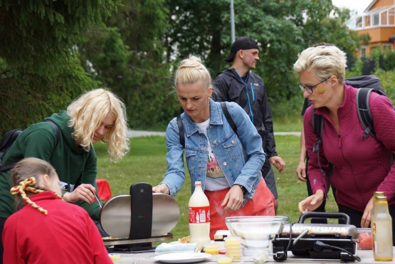 Dalyviai registravosi, segėsi numerius, piešė geltonos, žalios ir raudonos spalvų vėliavėles ant veidų. Prieš bėgimą visi nuo mažiausio iki vyriausio darė apšilimo mankštą. Praeidami norvegai teiravosi, koks ir kieno renginys čia vyksta.