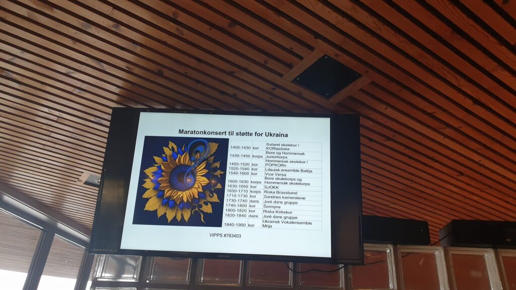 Kovo 25 dienos popietę Homersoko (Hommersåk) mieste, Norvegijoje, Riska bažnyčioje, vyko paramos koncertų maratonas Ukrainai paremti, kurį organizavo Rogalando lietuvių bendrija. 5 valandų trukmės renginyje pasirodė net 17 lietuvių, norvegų ir ukrainiečių meno kolektyvų. Renginį vedė Saulius Trepekūnas ir Kristina Ivickaitė.