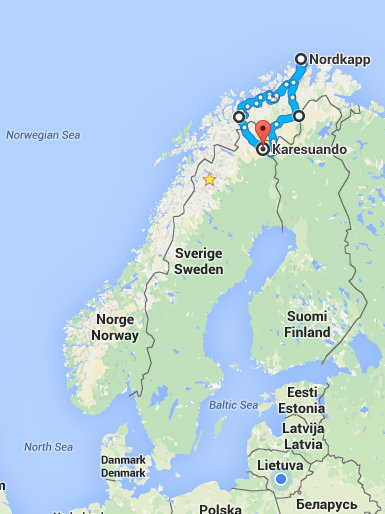 „Savo žygį pradėjome Švedijoje, Karesuando miestelyje, įsikūrusiame pasienyje su Suomija. Žemynine dalimi pravažiavome jau minėtą šalčiausią Norvegijos regioną, kur gyvena klajokliai samiai. Teko matyti šios tautos žmones, jų auginamus elnius. Viena samių genties moteris net pakvietė vakarienės“, – pasakojo P. Kemėšis.