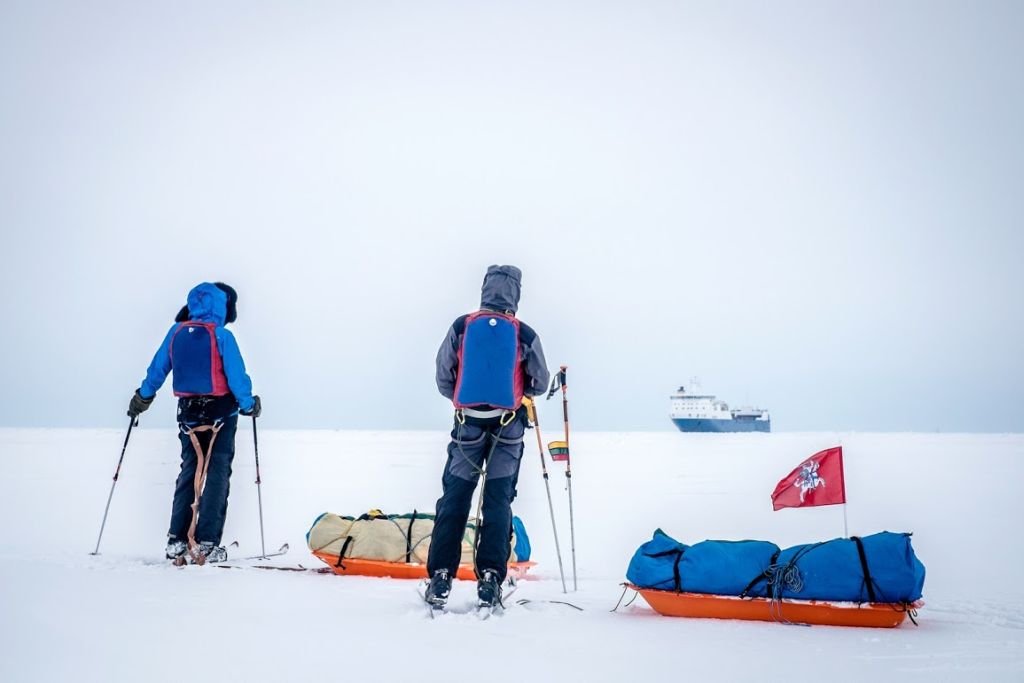 Jis pasakoja, kad turėjo labai tikslų tų vietovių jūrlapį, net kelis GPS ir stiprią palaikymo komandą Lietuvoje. Geografines sistemas išmanantys kolegos kiekvieną vakarą atsiųsdavo žygeivių koordinates, pateikdavo ledo dreifo, oro, vėjų prognozes.
