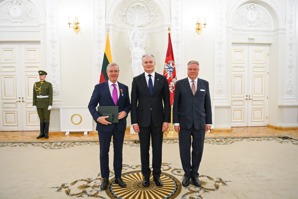 Prezidento dekretu ordino „Už nuopelnus Lietuvai“ Komandoro didžiuoju kryžiumi apdovanotas Ukrainos užsienio reikalų ministras Dmytro Kuleba, reikšmingai prisidėjęs stiprinant dvišalius Lietuvos Respublikos ir Ukrainos santykius bei diplomatinėmis priemonėmis telkiant tarptautinę paramą karą išgyvenančiai Ukrainai.