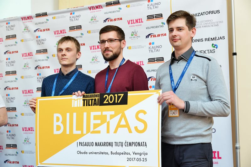 Pagrindinį prizą – kelialapį į pasaulinį turnyrą „World Championship in Spaghetti Bridge Building 2017“ – pelnė ketvirtoje vietoje likusi VGTU studentų komanda „Špikis“ – jų tiltas šiemet atlaikė 176,44 kg. Teisė gegužės 25 d. vykti į tarptautinį čempionatą Vengrijoje jiems atiteko dėl to, kad tarptautiniame konkurse gali dalyvauti tik studentų komandos. VGTU studentai išsaugojo ir 2016 m. pasiektą Lietuvos rekordą – tąkart jų net 1 kg nesveriantis tiltas iš makaronų atlaikė 307,6 kg apkrovą.