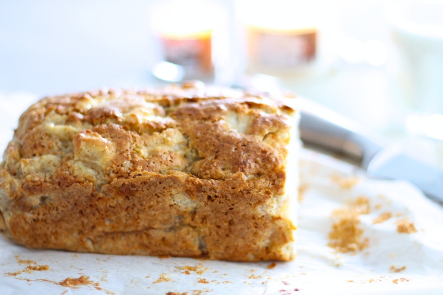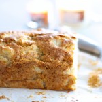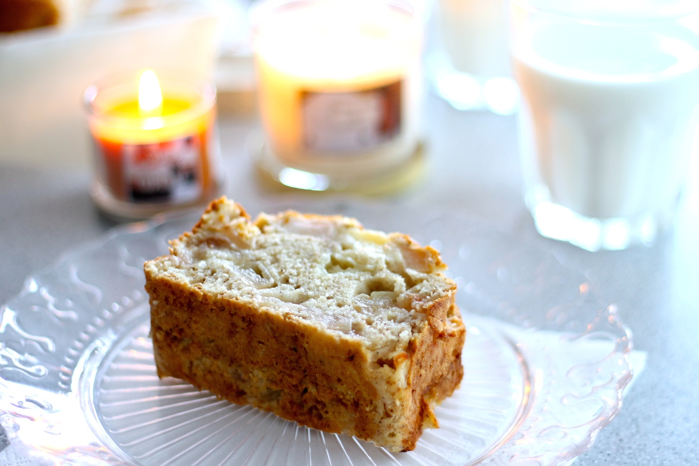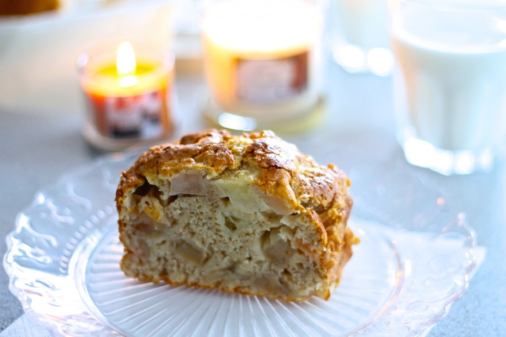 Miltus sumaišome su druska, cukrumi ir prieskoniais. Šakute įtriname sviestą, kad susidarytų drėgni trupiniai. Obuolius nulupame, išdarinėjame ir supjaustome kubeliais, įmaišome į miltų mišinį. Supilame pieną ir paplaktus kiaušinius. Viską išsukame iki vientisos masės ir sukrečiame į pailgą, kepimo popieriumi išklotą formą.