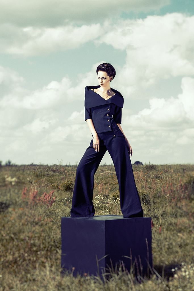 Mano kolekcijų dar nėra labai daug, kurį laiką ieškojau savo braižo ir jį gryninau. Tačiau dabar galiu pasakyti, kad pagrindiniai bruožai – geometriniai kirpimai, aiškūs siluetai, medžiagų kontrastas (kaip spalvinis, taip ir faktūrinis) ir metalinės detalės (užtrauktukai, sagos ir kt.).