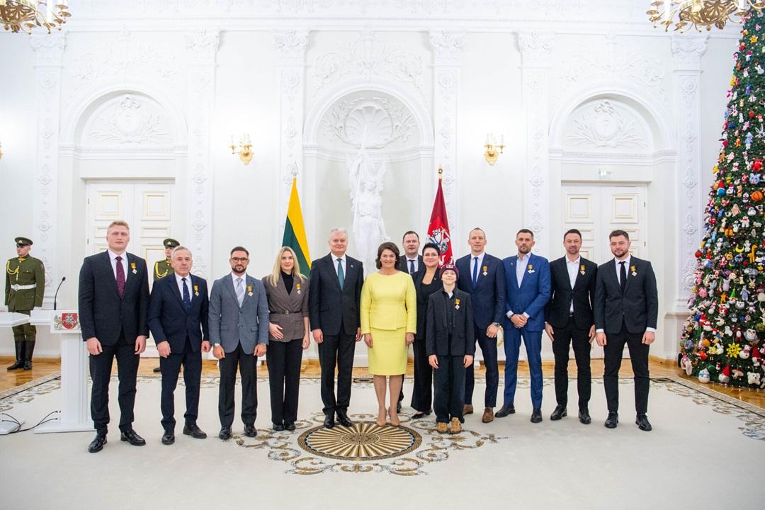Lietuvos didžiojo kunigaikščio Gedimino ordino Riterio kryžiumi apdovanoti treneriai Mantas Jusis, Algis Mečkovskis, Dainius Novickas, Karolis Sunklodas.