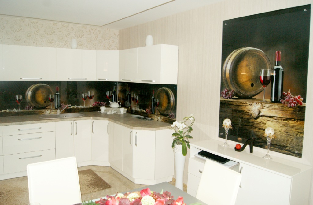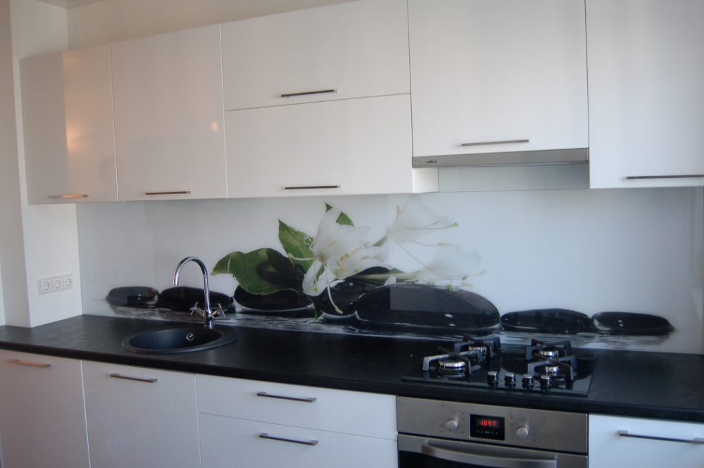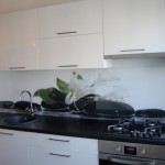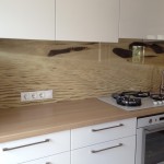 3. Plėvelėmis be didelio vargo atnaujinsite ir pabodusią virtuvės aplinką pakeisdami dažnai virš stalviršio naudojamas plyteles spalvingu, ryškiu piešiniu ar norima fotografija, perkelta ant plėvelės, kuri klijuojama ant stiklo. Labai dažnai virtuvės erdvė sujungiama su svetaine, tad virtuvės sienelė turi ne tik atrodyti estetiškai, bet ir derėti su interjero visuma. Sienelės vaizdą derinkite prie interjero detalių, prie atspalvio, netgi sofos pagalvėlių. „Paprastai rekomenduojama rinktis abstrakčius vaizdus. Svarbiausia yra detalės, tad bent vienas atspalvis nuotraukoje turėtų atitikti stalviršio atspalvį. Pavyzdžiui, juodi akmenukai turėtų derėti su juodu stalviršiu, baltas stalviršis – su kontrastingu juodu, o jame baltais elementais, rusvas stalviršis – su smėliu ir t. t. Taip moderniai įrengta virtuvė pagyvina namų interjerą“, – patarimais dalijasi dizainerė Renata.