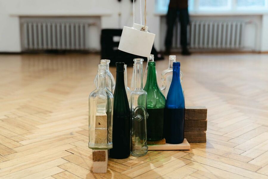 Menininkas Kristupas Gikas parodoje pristato garso instaliaciją „Butelių choras“, kurios idėja jam kilo pastebėjus, jog stovint lauke su atidarytu buteliu rankoje šis, papūtus vėjui, ima groti. Rudenį instaliaciją įgyvendinęs Austrijos kalnuose, šįkart jis pristato naują jos versiją, kurioje lankytojai, judindami virš butelių pakabintą ventiliatorių, gali patys diriguoti jų chorą.