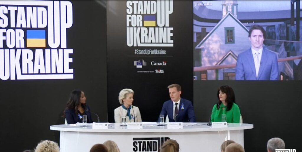 Kanados Ministras Pirmininkas Justinas Trudeau sakė: „Šiandien surinkome 12,4 mlrd. Kanados dolerių sumą, skirtą toliau remti Ukrainos žmonėms, kurie paliko namus dėl besitęsiančio ir nepateisinamo Putino karo. Nesvarbu, ar tai būtų maistas, vanduo, pastogė, ar medicininė pagalba, mes ir toliau teiksime reikiamą pagalbą. Palaikome Ukrainą.“