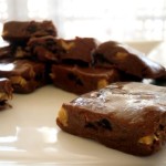 Negilų indą ištepame riebalais, supilame saldainių masę, su mentele išlyginame paviršių ir paliekame šaldytuve 1–2 val. Supjaustome norimo dydžio gabaliukais. Skanaus!