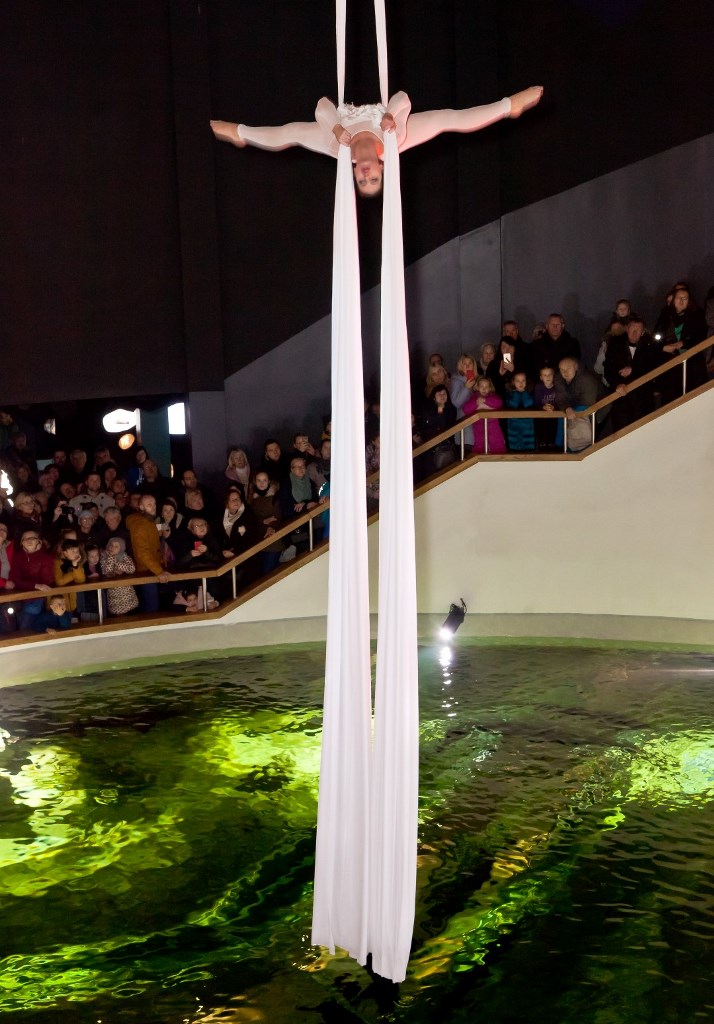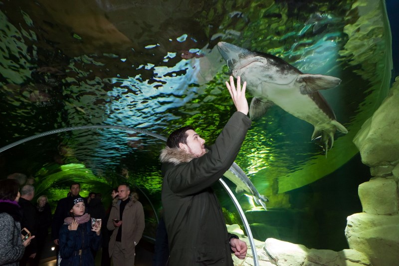 Atidarymo dieną naujajame akvariume apsilankė apie tūkstantį lankytojų. Jiems specialų renginį „Forto fantomas“ parengė Klaipėdos valstybinio muzikinio teatro komanda, subūrusi ir kitus Lietuvos bei Klaipėdos kūrybininkus, muzikus, menininkus. Renginys įgyvendintas pasinaudojus Lietuvos kultūros tarybos ir Lietuvos kultūros ministerijos parama. Renginio kulminacija tapo „skraidančių“ šokėjų – Aurelijaus Liškausko ir Ingos Briazkalovaitės – pasirodymas kartu su oro akrobate ore – erdvėje virš didžiojo baseino, po kuriuo įrengtas tunelis. Būtent tunelis ir tapo pagrindiniu traukos objektu, leidžiančiu pasijusti lankytojams povandeninėje erdvėje virš jų galvų raibuliuojant vandeniui ir plaukiant eršketams, kurių ilgis jau viršija du metrus.