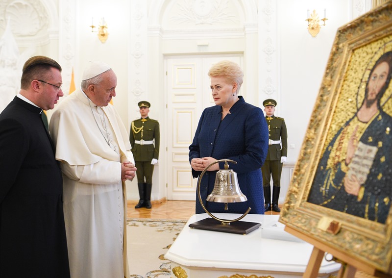 Po arkivyskupo Gintaro Grušo kalbos Popiežius Pranciškus įteikė jam dovaną, o jaunimas spontaniškai ėmė giedoti laiminimo maldą. Šventasis Tėvas suteikė apaštalinį palaiminimą visiems susirinkusiems.