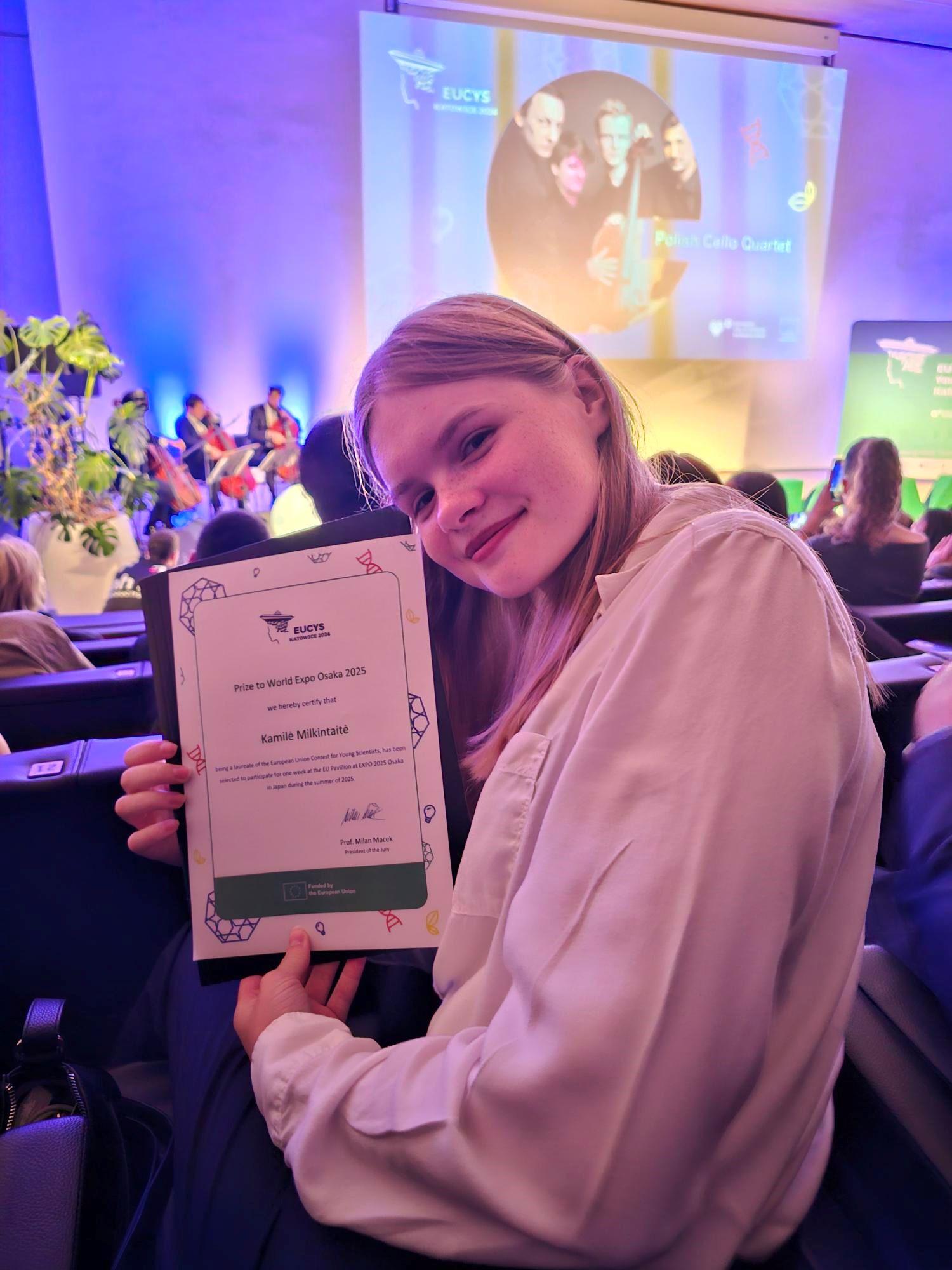 Katovicuose, Lenkijoje, vykusiame Europos Sąjungos jaunųjų mokslininkų konkurse Lietuvos atstovė Kamilė Milkintaitė laimėjo III vietą ir specialųjį Europos Komisijos įsteigtą prizą – savaitės trukmės kelionę į tarptautinę parodą „Expo 2025“ Osakoje, Japonijoje.