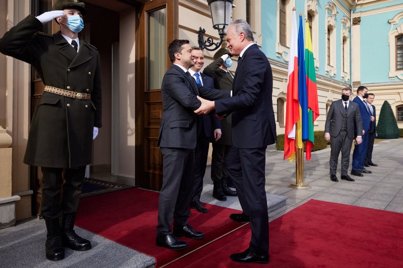 Šalies vadovas į Ukrainą atvyko kartu su Lenkijos Prezidentu Andrzejumi Duda po prieš tai Lenkijoje vykusių dvišalių konsultacijų. Kijeve įvyko Lietuvos, Lenkijos ir Ukrainos Prezidentų susitikimas Liublino trejeto formatu. Jo metu aptartos atsako priemonės po Rusijos sprendimo pripažinti Donecko ir Luhansko „respublikas“, susiklosčiusios saugumo situacijos deeskalacijos priemonės ir paramos Ukrainai klausimai.