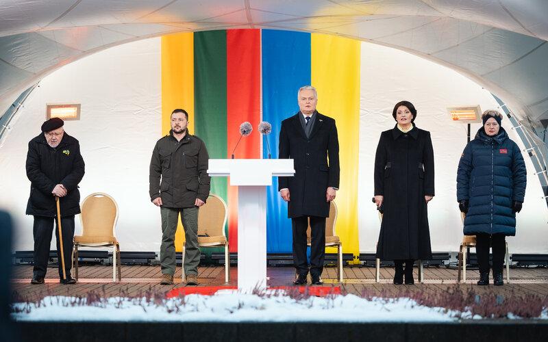 „Štai jau beveik dvejus metus čia, šioje aikštėje, Lietuvos ir Ukrainos vėliavos yra šalia viena kitos. Kartu jos laukia didžiosios svajonės išsipildymo. Laukia Ukrainos ginklo pergalės, kuri kartą ir visiems laikams užbaigtų grobuonių siautėjimo laikotarpį Europoje“, – sakė šalies vadovas, išreiškęs paramą Prezidento V. Zelenskio taikos planui.