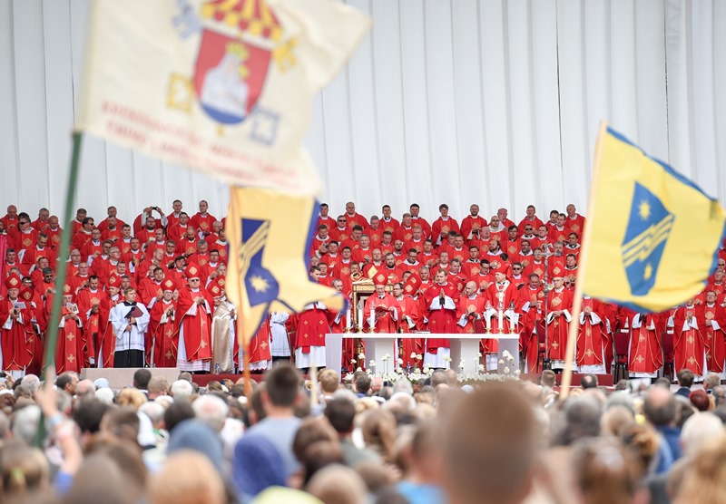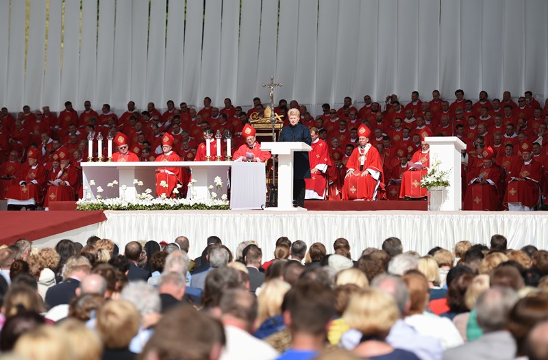 Iškilmingas šv. Mišias Katedros aikštėje, į kurias susirinko tūkstančiai tikinčiųjų, aukojo iš Vatikano atvykęs Popiežiaus legatas kardinolas Angelo Amato SDB.
