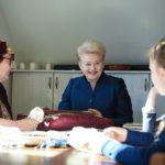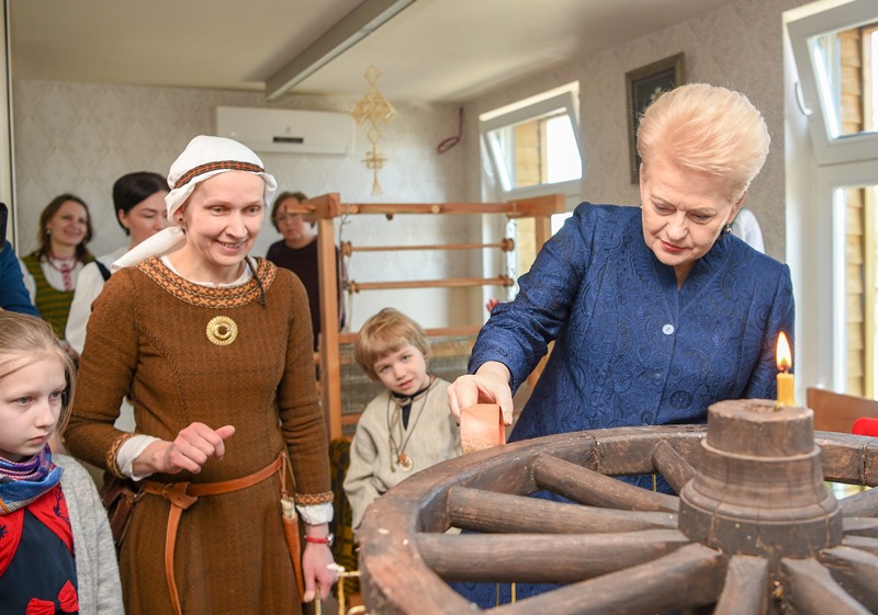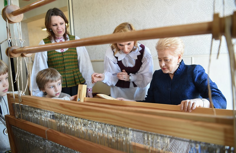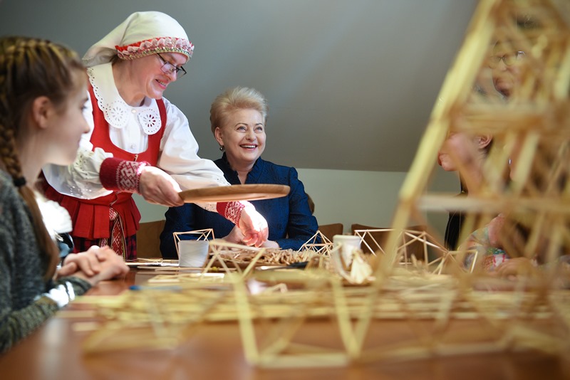 Tradicinių amatų centre Prezidentė išmėgino įvairias kiaušinių marginimo technikas – dažymą vašku, žolelėmis, putomis, mokėsi austi, liejo žvakes, gamino šiaudinį sodą, domėjosi, kaip siuvinėjamos tradicinės totoriškos adatinės, gamino tikrus karaimiškus kibinus, apžiūrėjo vietos tautodailininkų dirbinius.