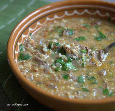 Tiršta, aitri sriuba su ryžiais, graikiniais riešutais ir granatų sultimis. Labai gardi.